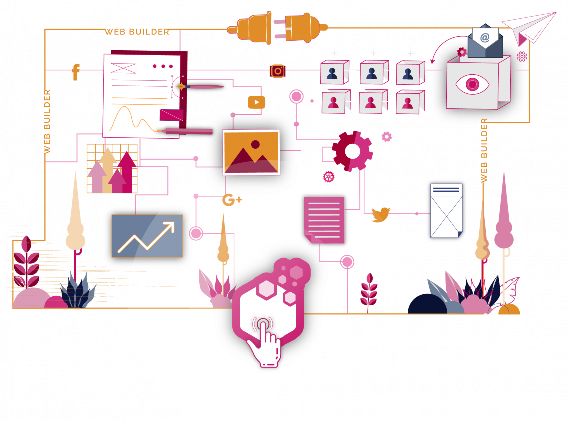 Web Builder es parte de la suite DataCrush Marketing Cloud, esto significa que además de poder crear hermosas páginas landing, podrás diseñar y ejecutar tu campaña completa de marketing y ventas sin necesidad de utilizar múltiples plataformas o proveedores.